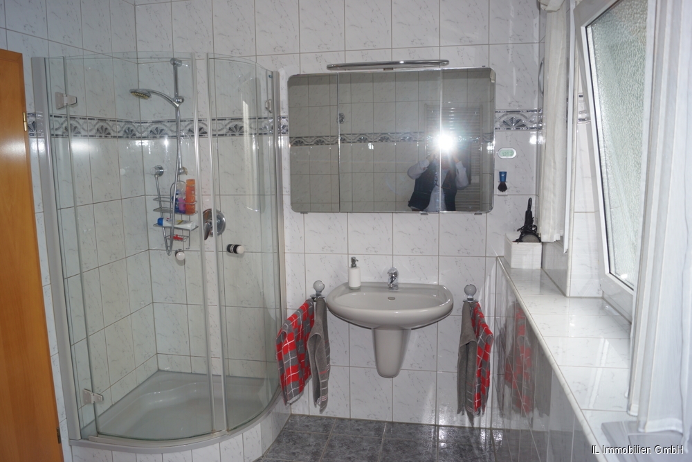 Das Haus besitzt zwei Bäder, ein Bad im Erdgeschoss mit Dusche und Badewanne und ein Bad im Dachgeschoss mit Dusche und WC. Ein Gäste WC, Diele sowie ein Abstellraum sind ebenfalls vorhanden.
