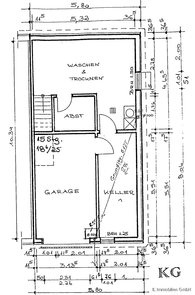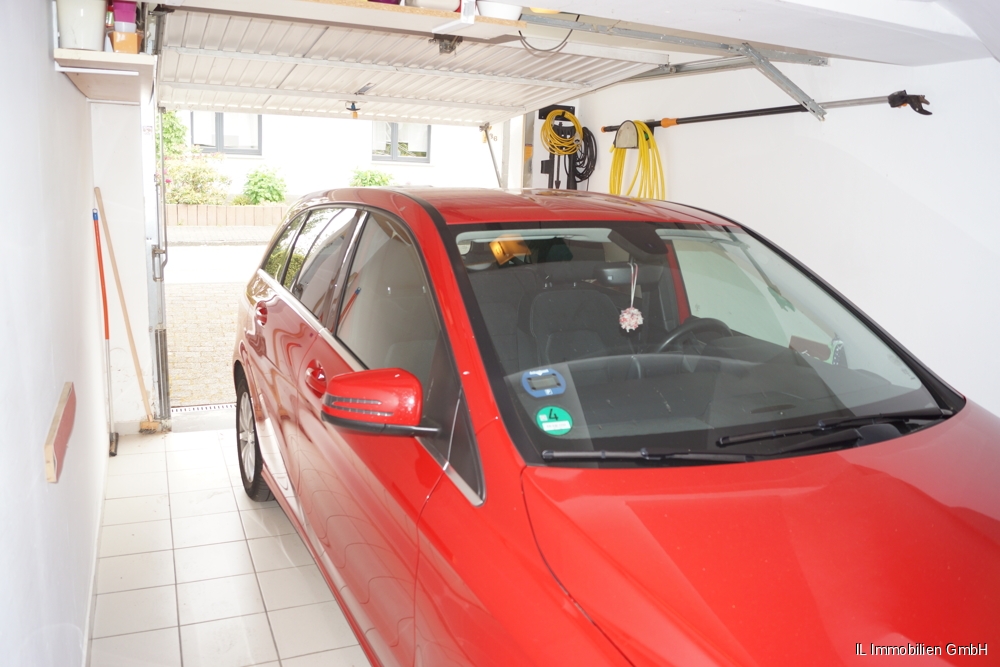 Die Garage befindet sich im Kellergeschoß, von dort aus gelangt man in die Kellerräume und auch ins Wohnhaus,