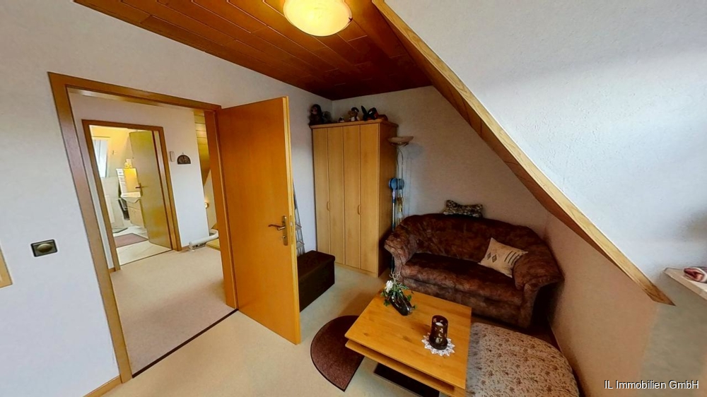 Im Erdgeschoss erwartet Sie ein gemütliches Wohnzimmer. Die geräumige Küche ist mit dem Esszimmer verbunden. Hier können Sie in kleiner oder großer Runde zusammensitzen. Vom Esszimmer aus geht es auf den großen terrassenartigen Balkon. Auf dieser Ebene ergänzt ein Gäste-WC das Raumangebot.