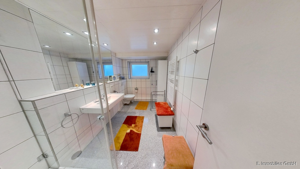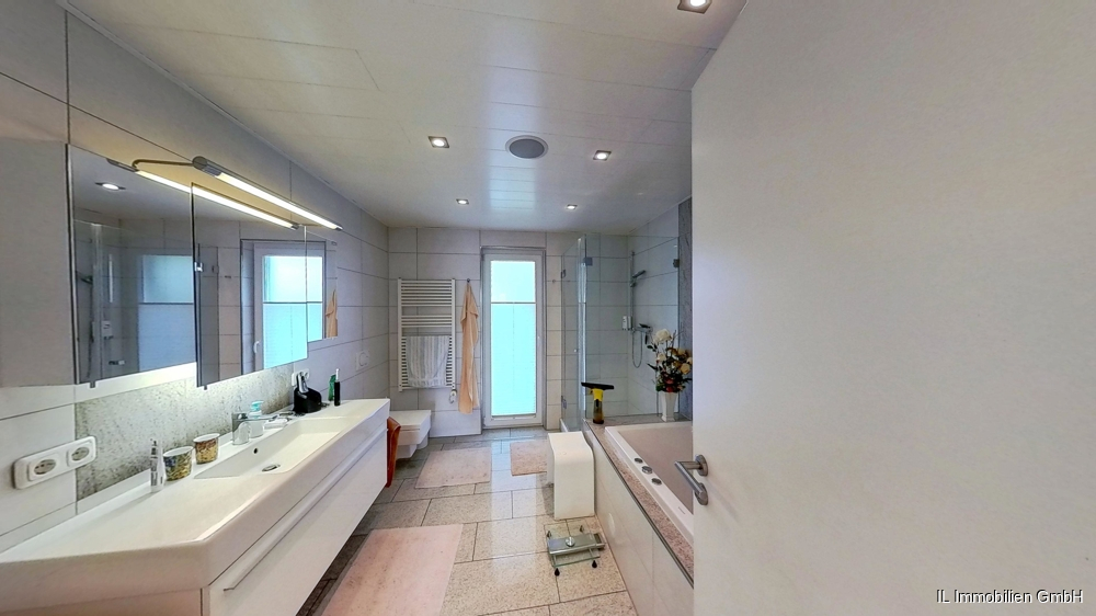 Die Fußbodenheizung, die sowohl im Erd- als auch im Untergeschoss in jedem Raum einzeln über Homatic steuerbar ist, sorgt ganzjährig für angenehme Temperaturen. Die Beheizung erfolgt über eine moderne Wärmepumpe, die zusätzlich eine Kühlfunktion bietet. Die Haustechnik umfasst eine Satelliten-Anlage für 2 Satelliten mit Anschlüssen in mehreren Räumen sowie eine LAN-Verteilung in alle Wohnräume. Die Rollladensteuerung mit Astrofunktion und eine Alarmanlage mit Telefonruf von innen und außen scharf schaltbar sorgen für Sicherheit und Komfort. Im Hausanschlussraum gibt es eine Wasserenthärtungsanlage. Ihre Fahrzeuge stehen geschützt in der gefliesten Doppelgarage und zusätzlich gibt es noch einen Stellplatz.