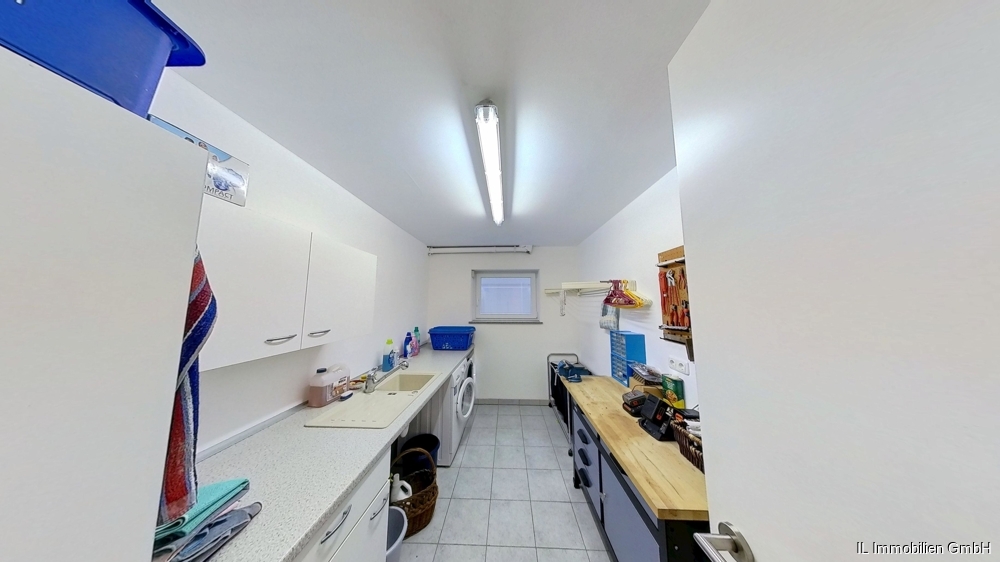 Im Untergeschoss (als Nutzfläche deklariert) stehen 3 weitere wohnlich ausgebaute Räume zur Verfügung, die sich als Büro, Gästezimmer oder Hobbyräume nutzen lassen. Auch hier wurde auf Komfort nicht verzichtet: eine Sauna, ein weiteres Badezimmer mit Dusche, ein Wasch- und Trockenraum, ein Vorratsraum sowie der Hausanschlussraum bieten reichlich Platz.